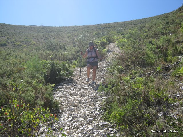O "pior" estava para vir. Caminhos fechados pelas silvas e descida para a Fórnea pela cascalheira. Se conseguíamos contornar as silvas pulando os cercados, a descida teve de ser mesmo feita pela cascalheira. Contornando os tojos e as pedras maiores. tínhamos de estar com atenção para não confundir o alecrim com o tojo. São parecidos excepto num pormenorzinho: o tojo pica!