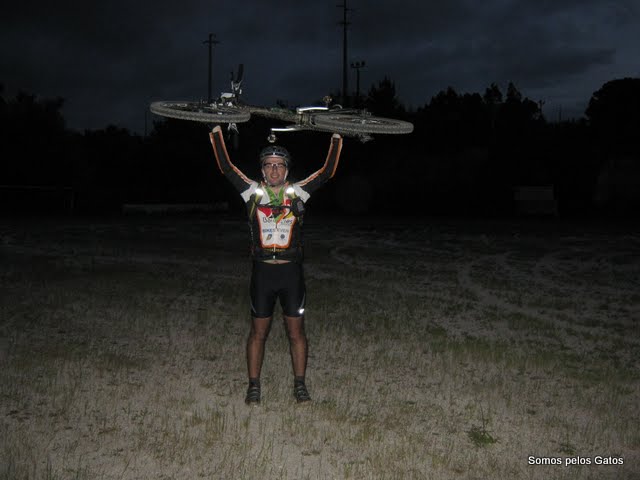 Contemplar o pôr do Sol a pedalar, a dois, foi um dos bons momentos deste desafio. Outro momento marcante foi ficar a conhecer os nossos limites físicos, não aguentávamos muito mais. E não era por causa das luzes, porque essas iam na mochila... Nem precisámos delas porque no final fomos apanhados por outro grupo e aproveitámos a sinalização das luzes deles.
